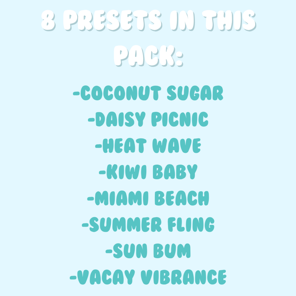 8 presets, inspired by @kylieaccardi and her 2021 Summer Preset Pack.